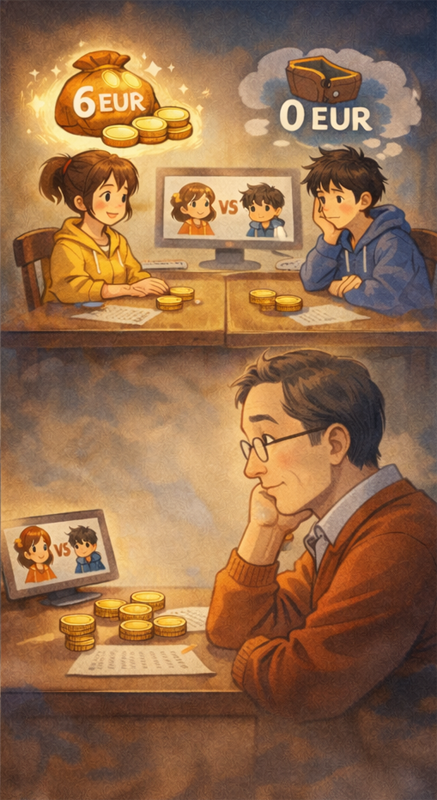 The inequality implemented by spectator j is given by: \[ e_j = \frac{\left| \text{Income worker}\ A_j - \text{Income worker}\ B_j \right| }{\text{Total income}} \in \left[ 0, 1 \right] \]
