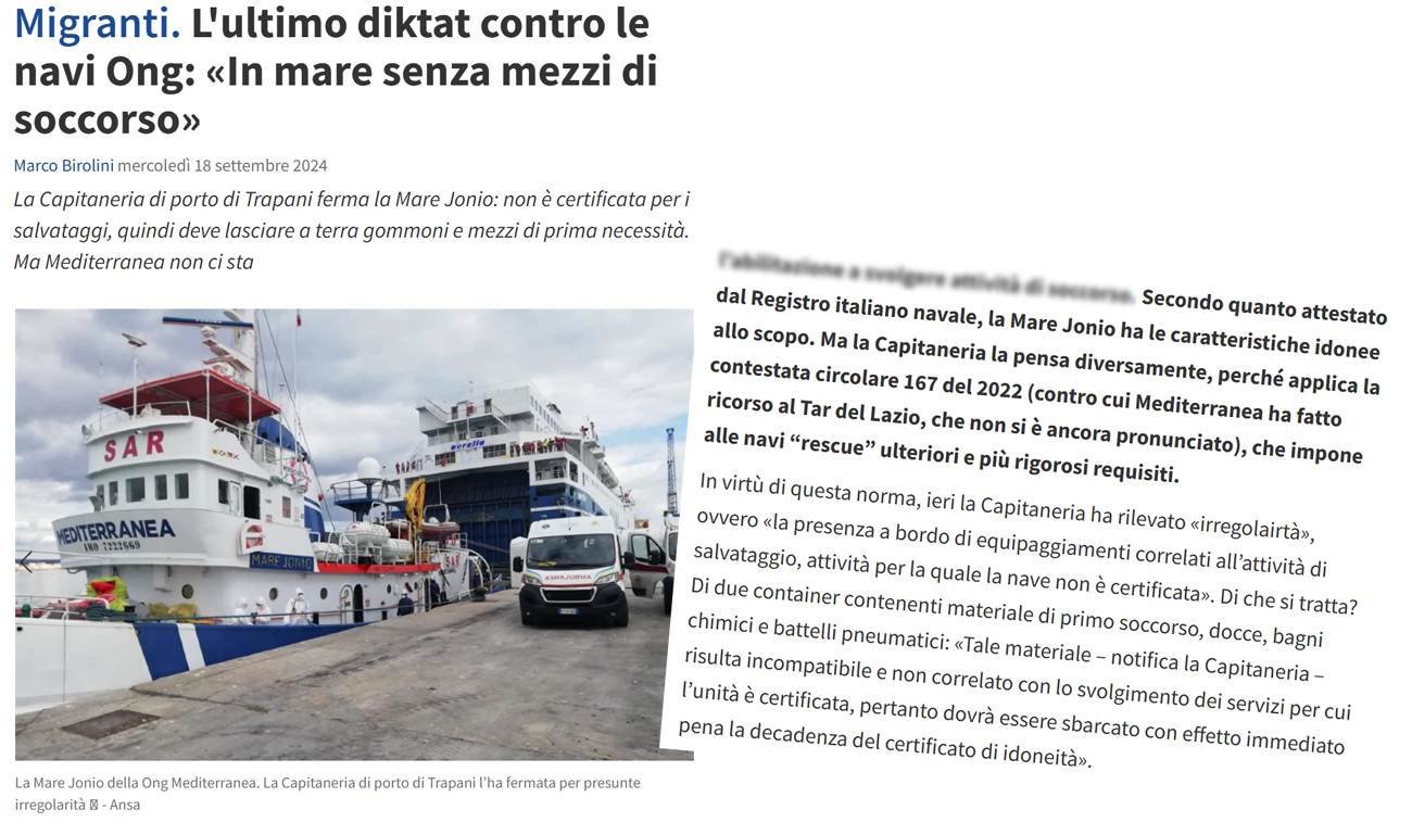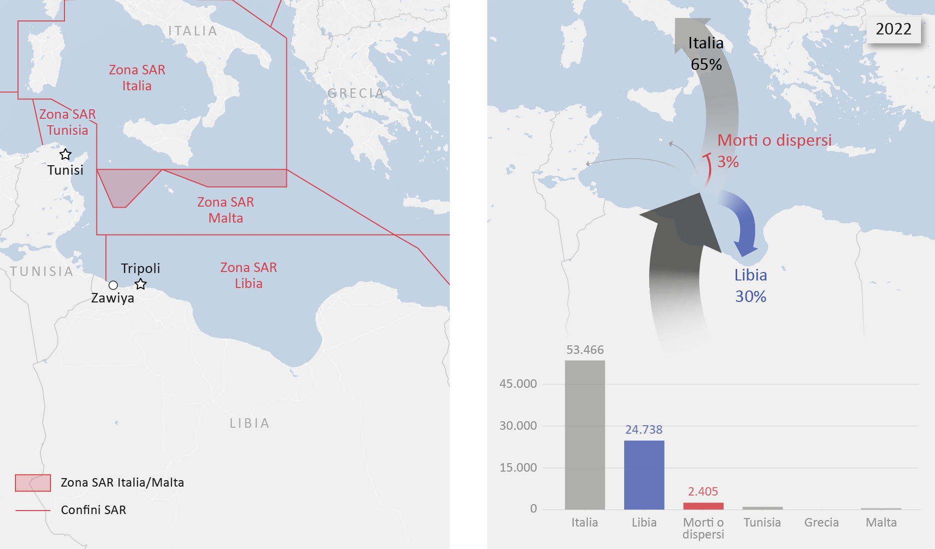 Unica presenza nel Mediterraneo a operare attività di ricerca e soccorso senza finalità di controllo dei confini.